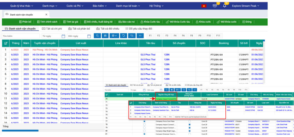 Kế thừa dữ liệu từ kế hoạch trả hàng, quản lý cược cont và in ấn bảng kê chi phí giao lệnh, trả cược