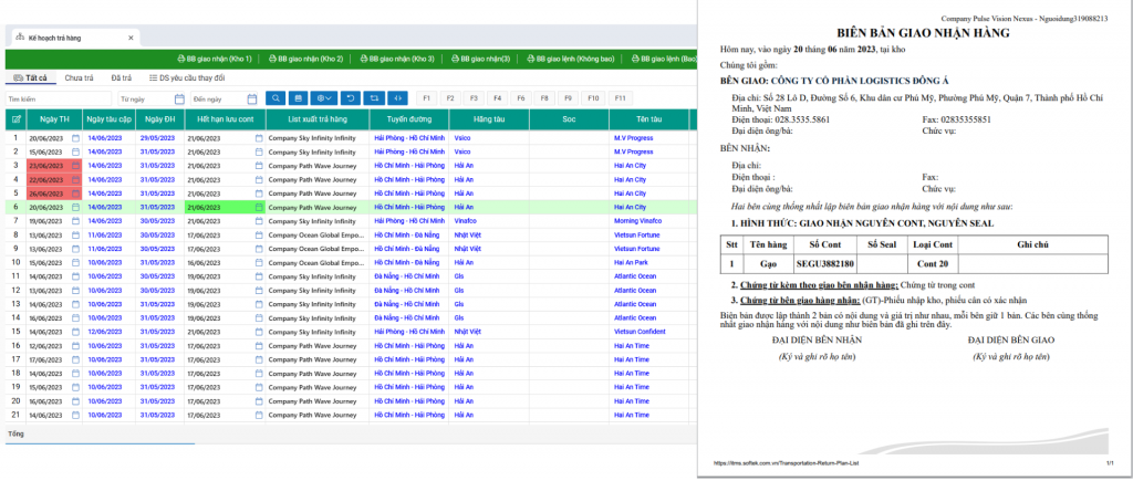 Quản lý kế hoạch trả hàng, in ấn các mẫu biểu, biên bản giao nhận,…