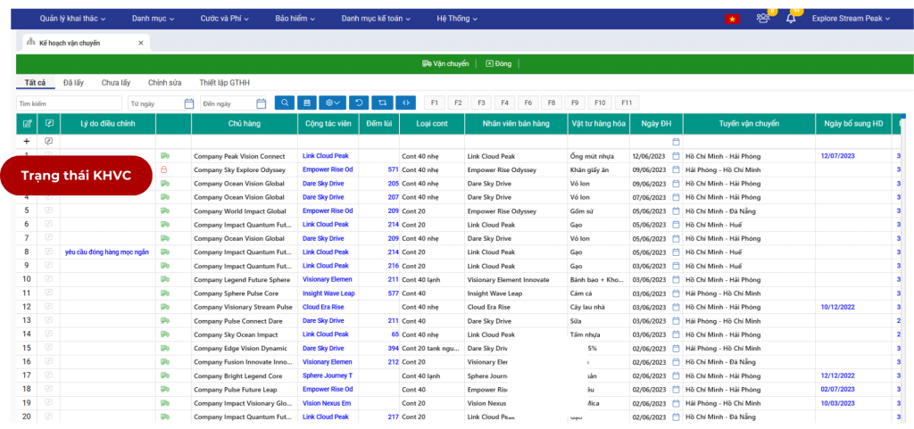 Tổng hợp doanh thu – chi phí theo chuyến, kế hoạch vận chuyển, phục vụ đối soát kế toán.